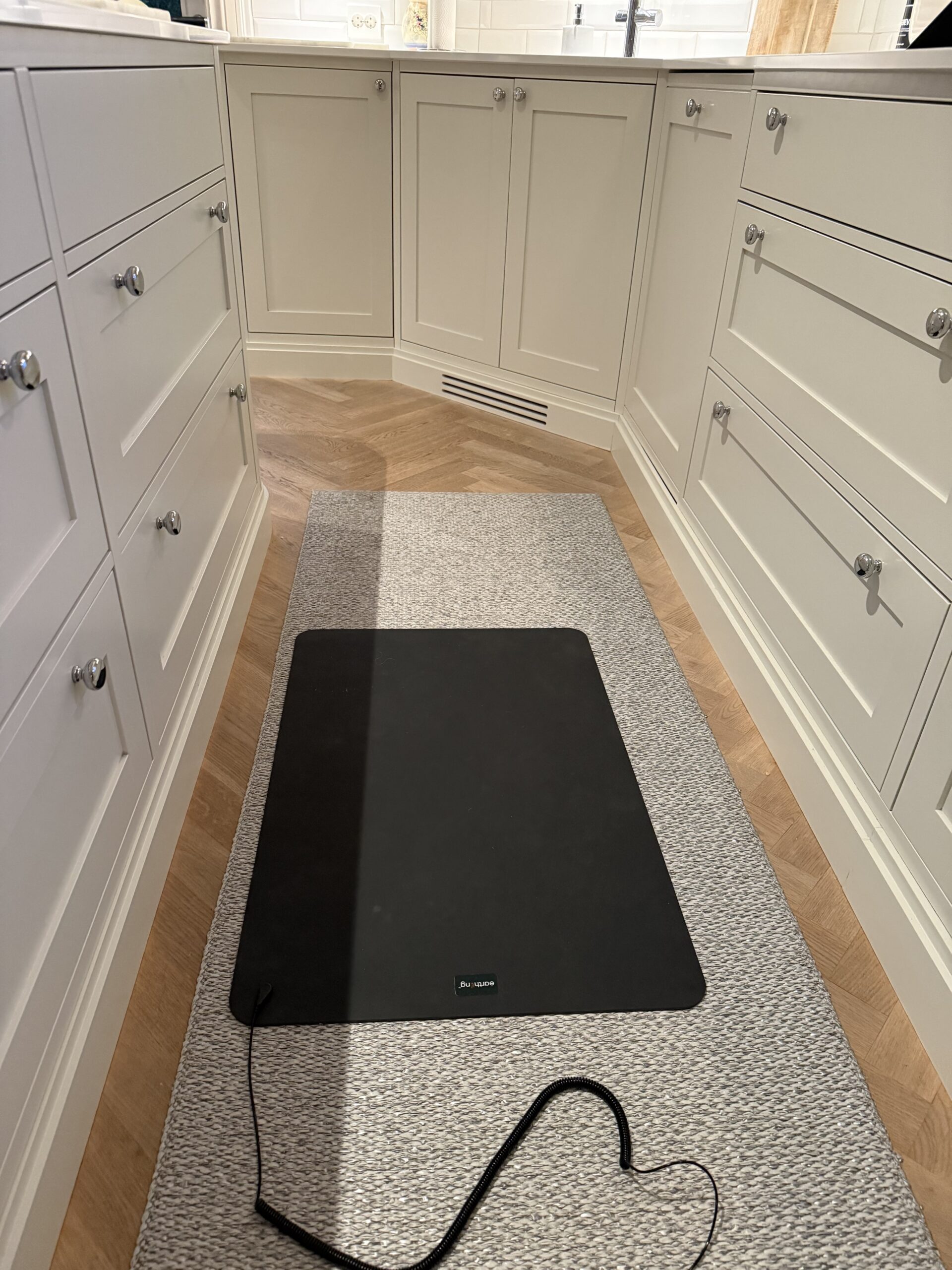 Matten er laget av Earthing Elite ™ jordingsmateriale som er et resultat av to tiår med forskning og utvikling. Den er 100 % ledende, lett å rengjøre og veldig slitesterk. Når den er koblet til den jordede stikkontakten eller via et jordspyd er du klar til å nyte effekten av å være jordet.